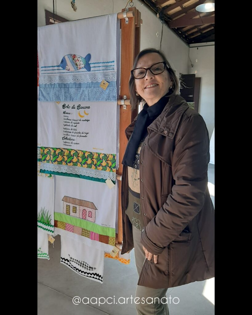 Hoje, já aposentada, encontrei um novo propósito na Fábrica de Cultura 4.0 de Iguape. Lá conheci duas amigas com quem construí uma grande amizade que virou parceria. Com um “empurrãozinho” do nosso arte-educador, nasceu a Azantenadas – artesãs de A a Z.